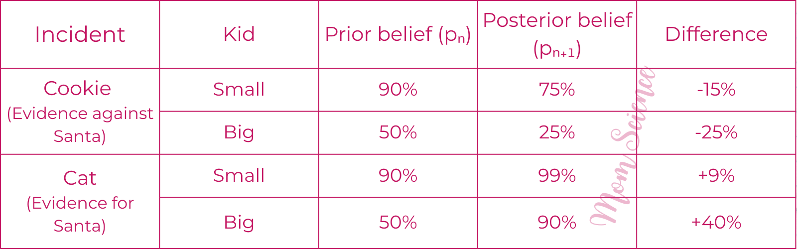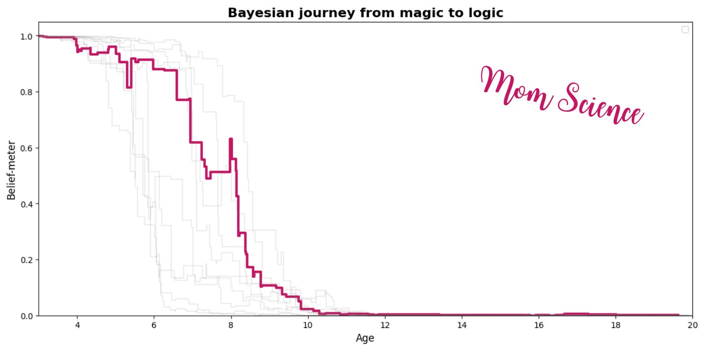 Reminiscing about my journey of debunking Santa, and reading a fascinating paper about a related study1 , I realized that the process has a striking resemblance to one well-known to science: a Bayesian inference.