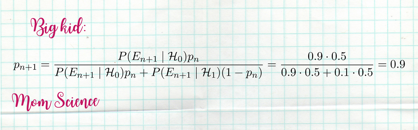 What does this mean for the kids? The small kid’s belief drops from 90% to 75%. A 15% decrease.